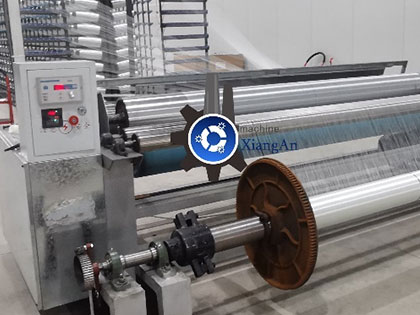 Our XiangAn fiberglass mesh warping machine is to wind the fiberglass yarn from the bobbin onto the warp beam ,our machine has an advanced tension control system, which can make the tension of each yarn uniform on the warp beam, to ensure that the woven mesh is uniform and square.our machine has an advanced detection system. Once the yarn is disconnected, the machine will automatically stop immediately, and there will be no loss of yarn.